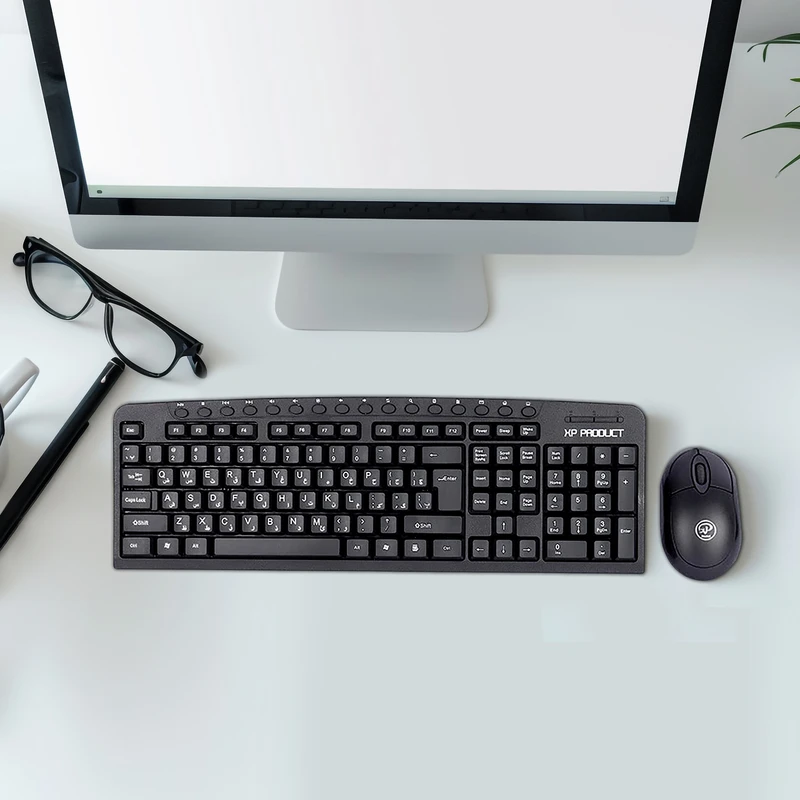 ست کیبورد و موس ایکسپی-پروداکت مدل 10600H یک مجموعه باسیم و اقتصادی است که از طریق رابط USB به سیستم متصل میشود 💻.